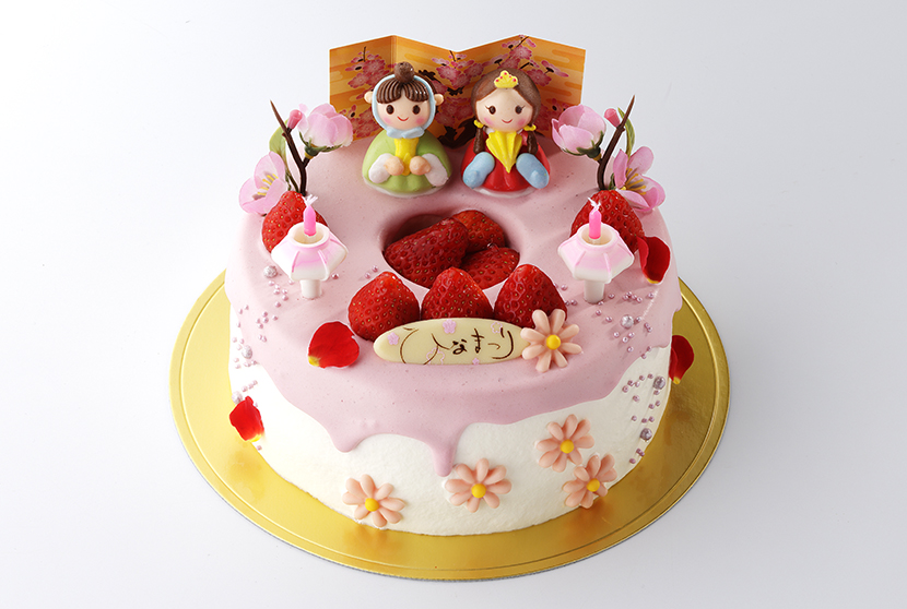 ひなデコ定番の苺サンドのひなまつりケーキ 12㎝~ 写真は直径18㎝です ※デザイン・飾りの変更がある場合がございます