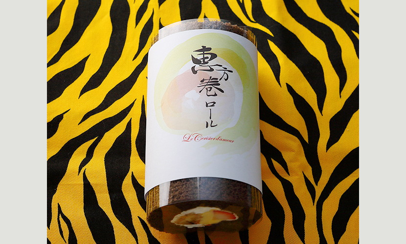 3種類のフルーツをカスタードクリームと生クリーム、ブラックココアを使用したスポンジで巻いたロールケーキを巻き寿司風にしました。