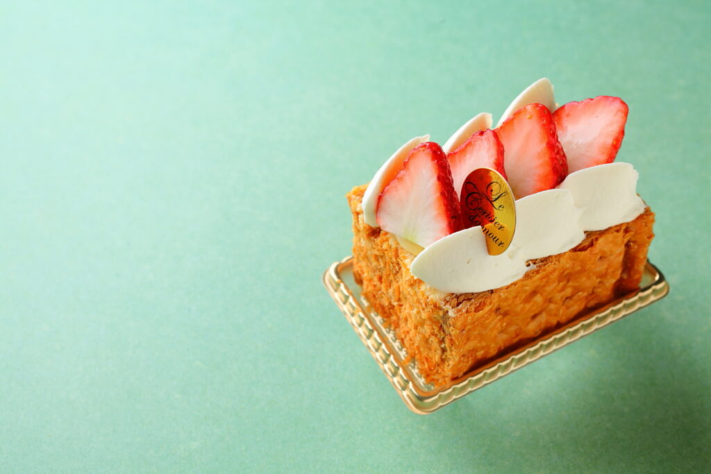 スリジェ自慢のスポンジとフレッシュ生クリーム、黄桃がサンドしております。